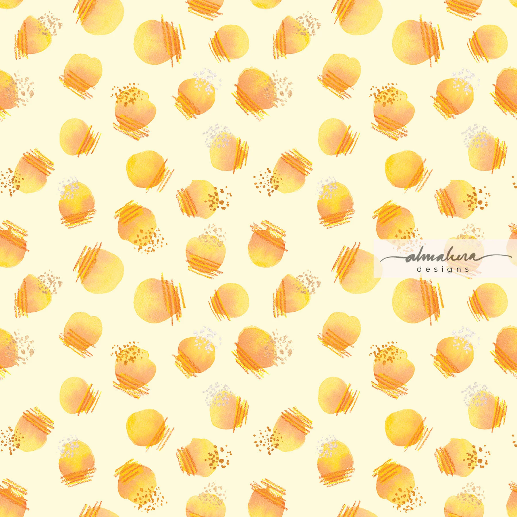 I decided to paint the motifs in watercolour. I wanted the vibrant colours that the medium offers, but more than that, I wanted the granulation and gradation of colours - my favourite characteristics of watercolour. I ended up designing twelve patterns for the client to choose from: ten patterns housed within two collections, and two standalone patterns. All save one began their lives as brush strokes on paper, then scanned and transformed into patterns in Photoshop. The one remaining pattern was done entirely digitally - initially in Procreate using a “watercolour” brush, then in Photoshop.